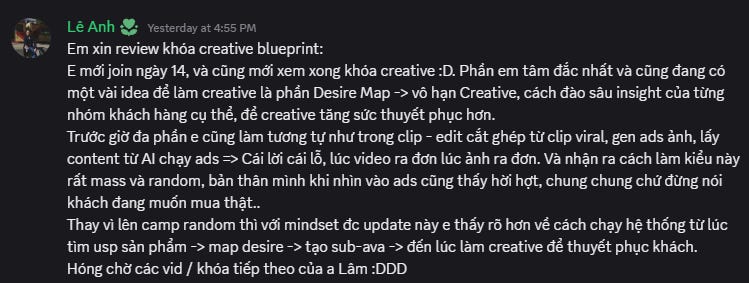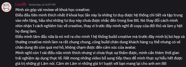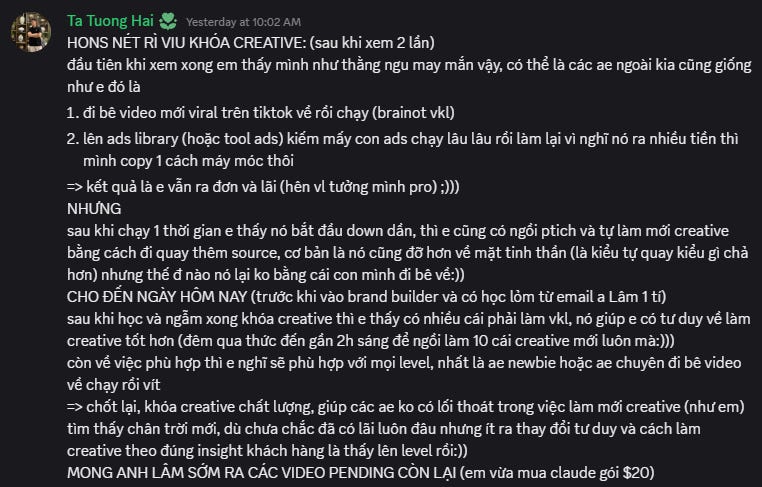 Khoá Creative tháng 3 trong Brand Builders vừa kết thúc tuần trước, và reviews từ anh em members có vẻ cũng hơi hơi tích cực.